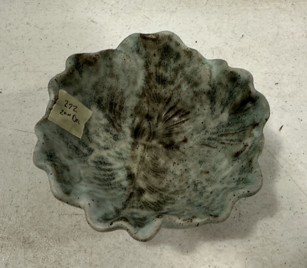 Peter's Pottery Leaf Design Bowl, signed, good condition, 5 1/2"dia, Location Front Shelves Peter's Pottery Leaf Design Bowl, signed, good condition, 5 1/2"dia, Location Front Shelves