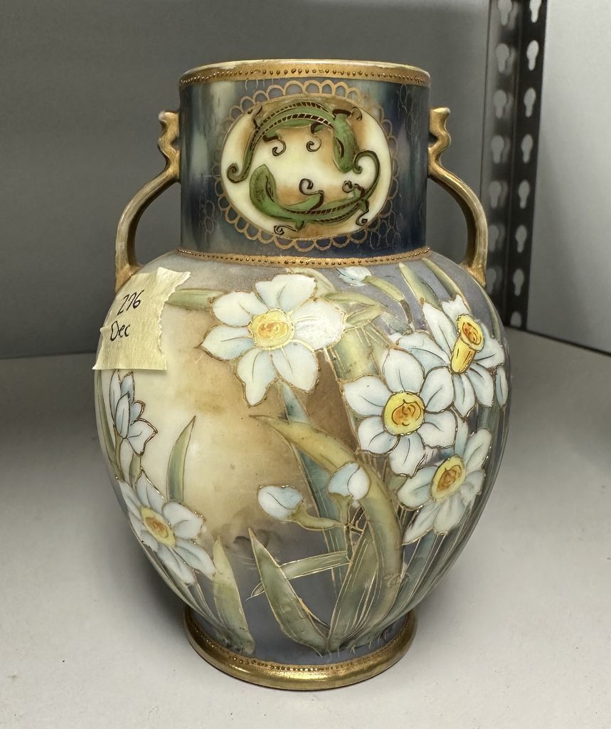 Nippon Hand Painted Porcelain Vase, floral, 6"h, Location Back Metal Shelves Nippon Hand Painted Porcelain Vase, floral, 6"h, Location Back Metal Shelves