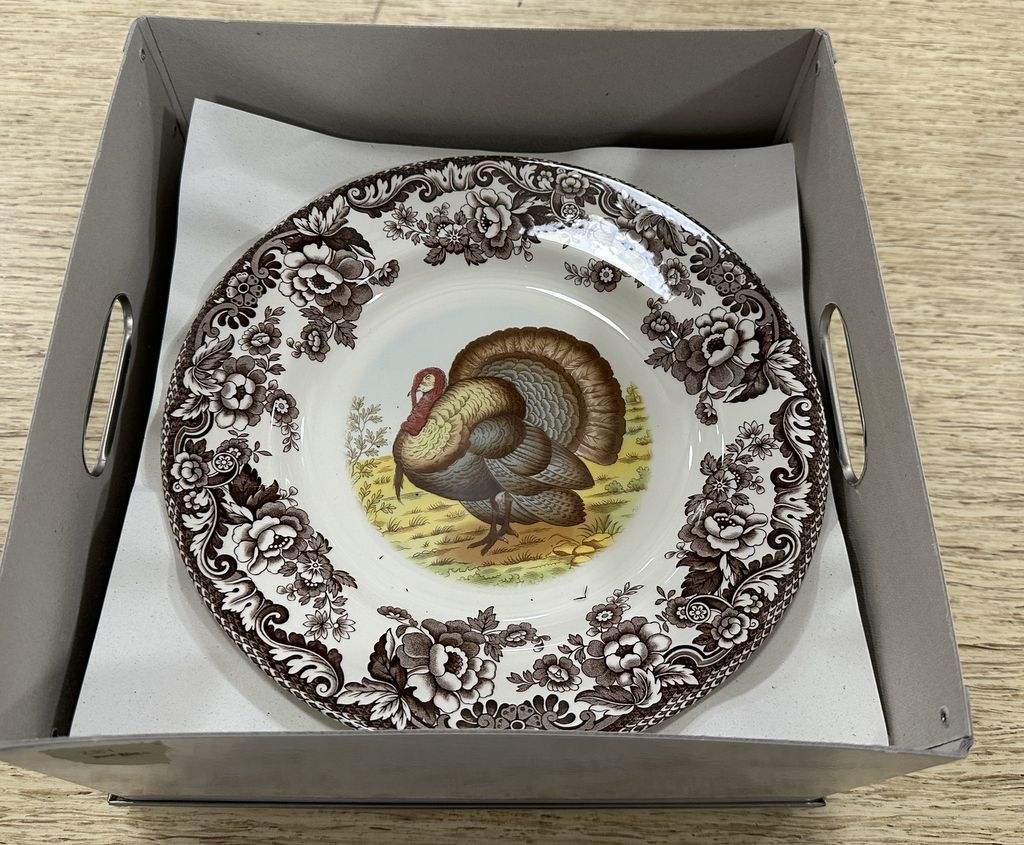10 Spode Woodland Dinner Plates, Location Right Metal Shelves 10 Spode Woodland Dinner Plates, Location Right Metal Shelves