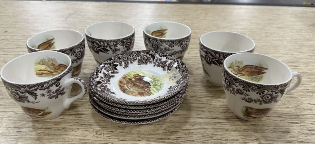 6 Spode Woodland Cups and Saucers, Location Right Metal Shelves 6 Spode Woodland Cups and Saucers, Location Right Metal Shelves