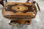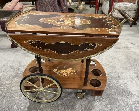Italian Inlaid Push Serving Cart, 29"h., 28"w, reproduction, light wear. Location Left Office 2 Italian Inlaid Push Serving Cart, 29"h., 28"w, reproduction, light wear. Location Left Office 2