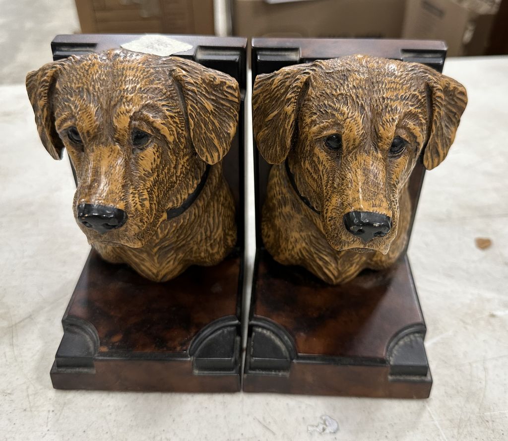 Pair of Resin Dog Head Bookends, 7"h, Location Back Metal Shelves Pair of Resin Dog Head Bookends, 7"h, Location Back Metal Shelves