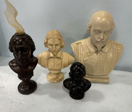 Group of Decorative Bust Statues, 8"h, William Shakespeare, Location Back Metal Shelves Group of Decorative Bust Statues, 8"h, William Shakespeare, Location Back Metal Shelves