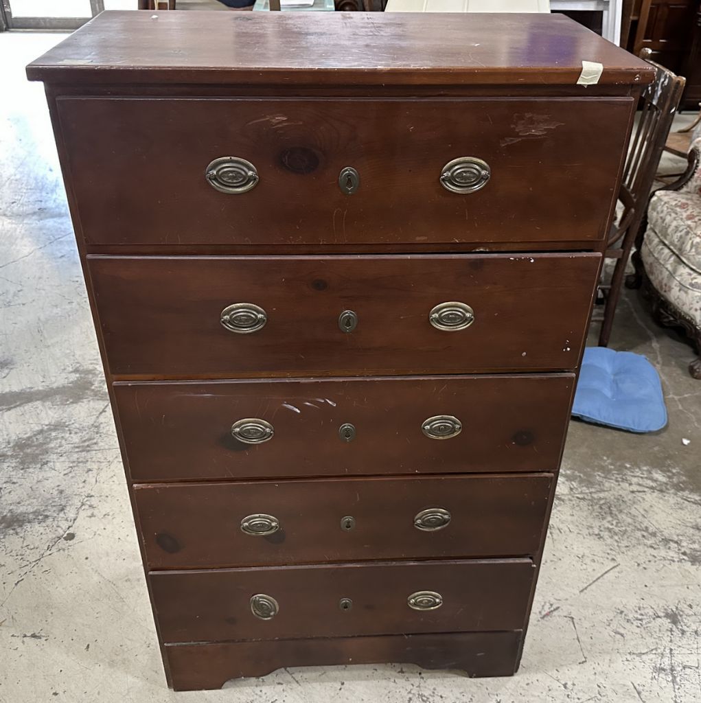 Late 20th Century Chest of Drawers, has surface wear, 48"h., 30"w. Location Row 2 Late 20th Century Chest of Drawers, has surface wear, 48"h., 30"w. Location Row 2