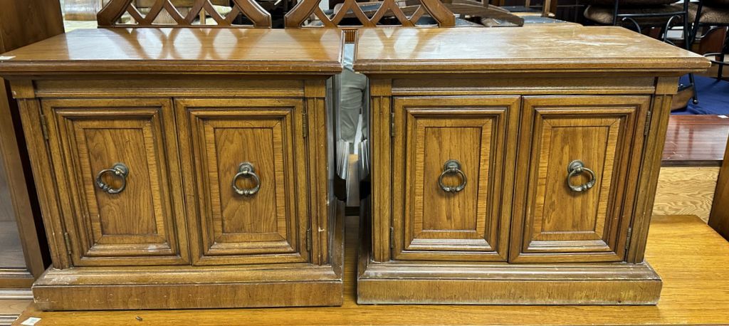 Late 20th Century Oak Nightstands, 22"h., 28"w. Location Row 4 Late 20th Century Oak Nightstands, 22"h., 28"w. Location Row 4