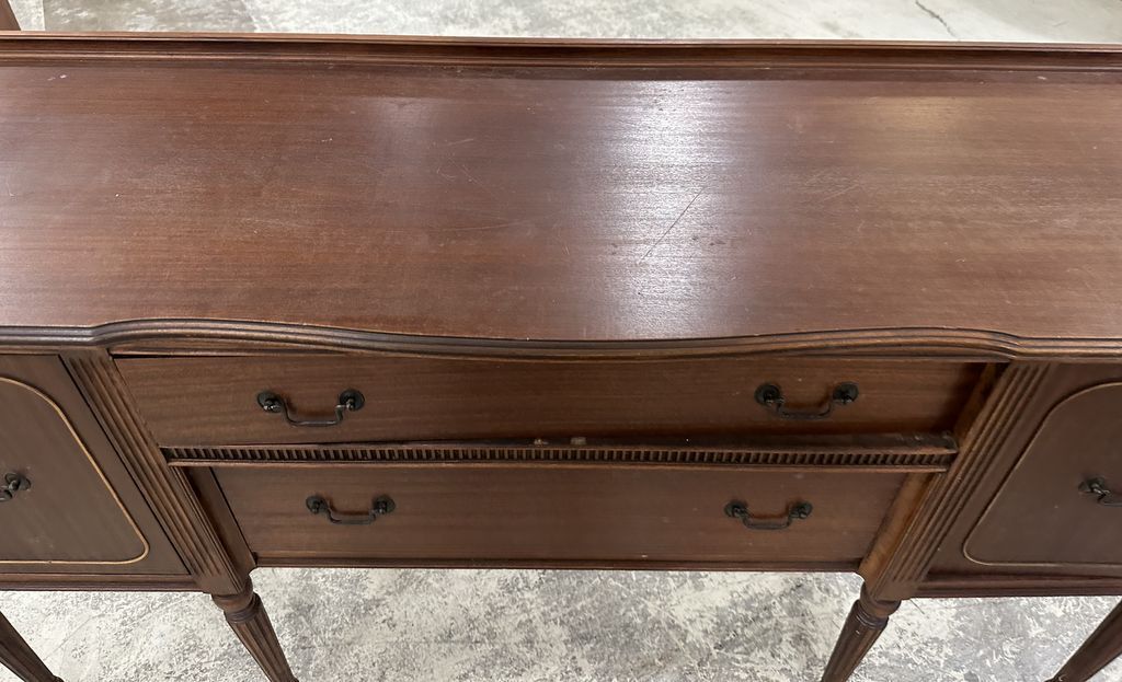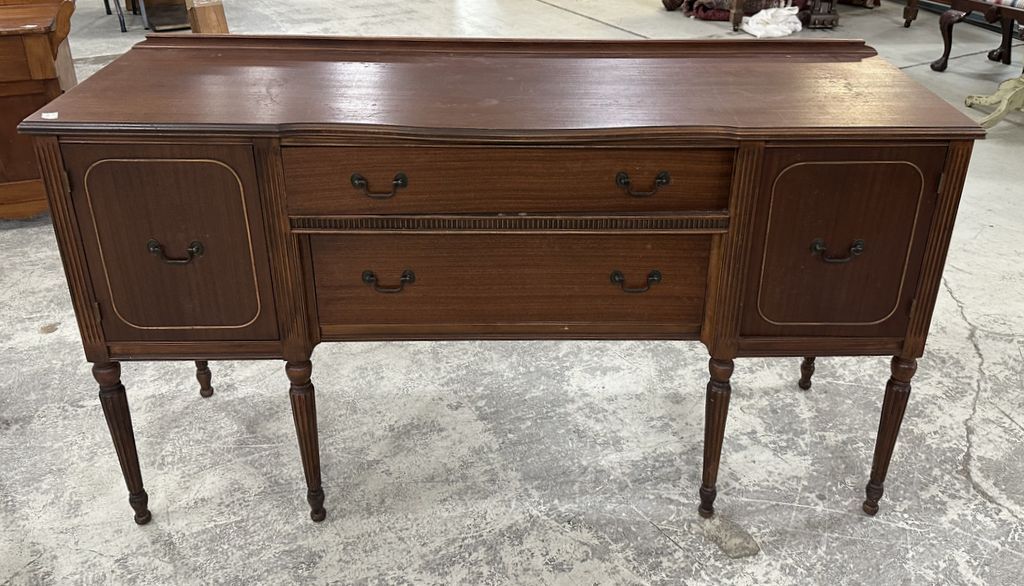 Mid 20th Century Mahogany Buffet, has finish wear, Traditional Style, 36"h., 66"w. Location Row 2 Mid 20th Century Mahogany Buffet, has finish wear, Traditional Style, 36"h., 66"w. Location Row 2