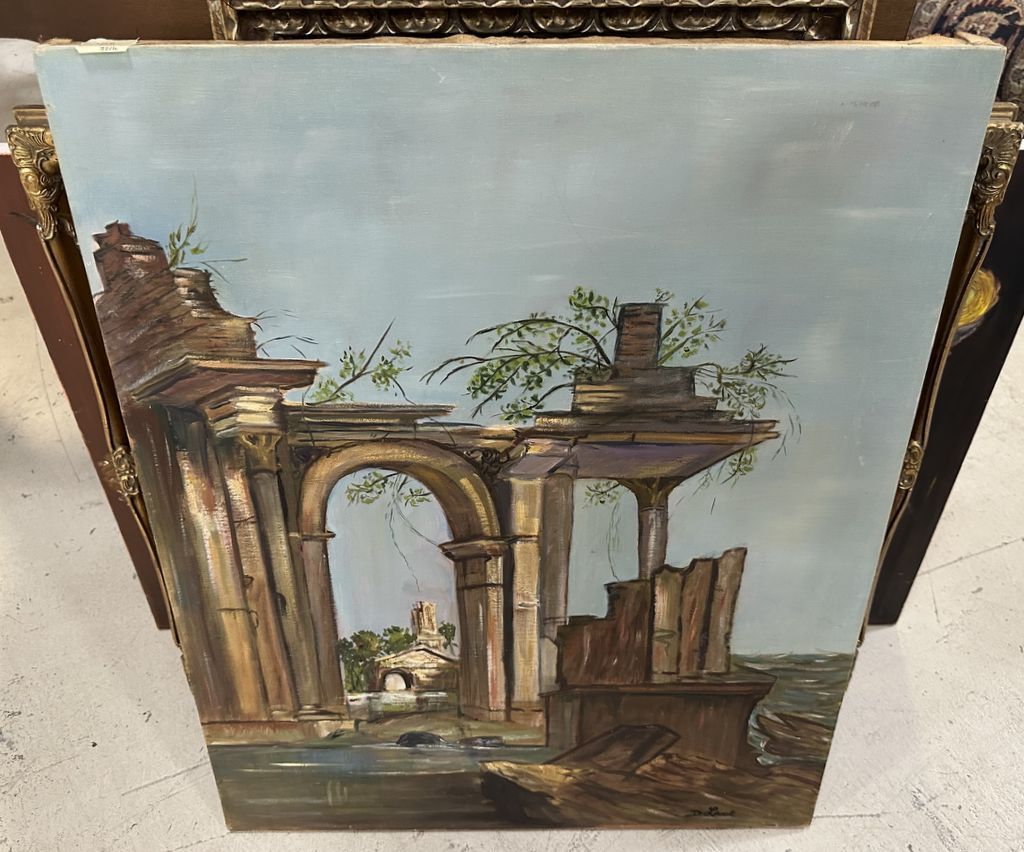 B. Lack Painting of Ruin, unframed, 30"h., 24"w, Location Left Office 1 B. Lack Painting of Ruin, unframed, 30"h., 24"w, Location Left Office 1