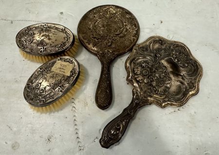 435 Four Piece Embossed Silver Plate Vanity Brushes
