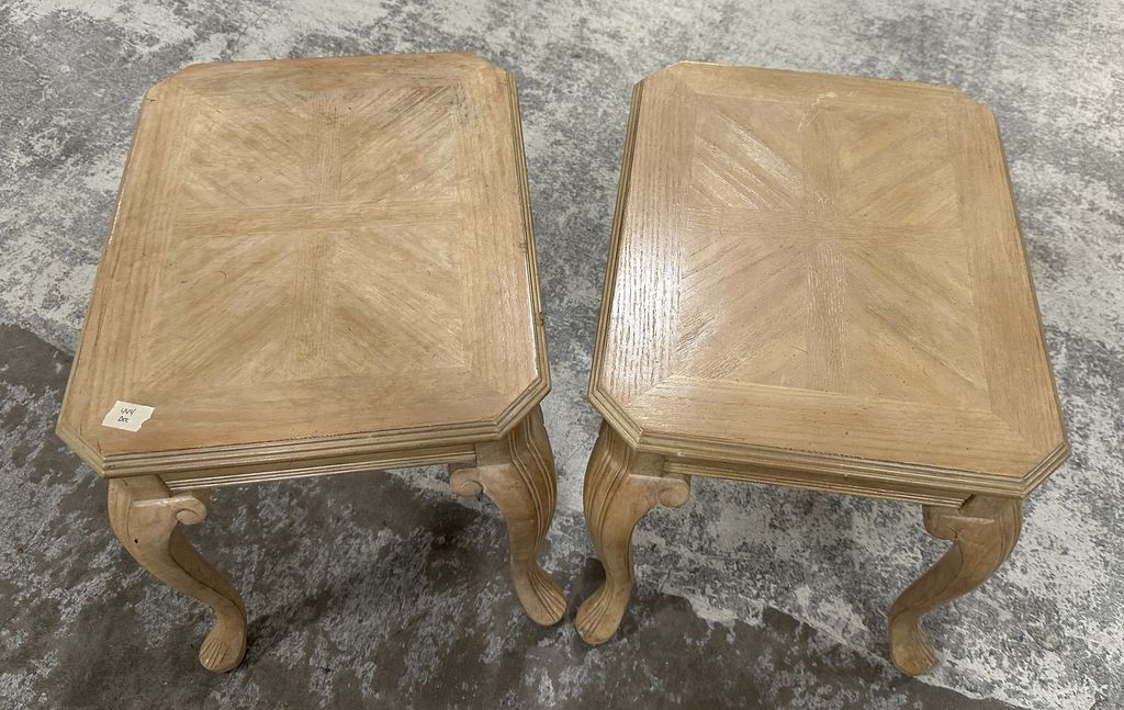 Pair of Modern Queen Anne Maple Side Tables, 18"h., 16"w, one has worn spot on top. Location Row 2 Pair of Modern Queen Anne Maple Side Tables, 18"h., 16"w, one has worn spot on top. Location Row 2