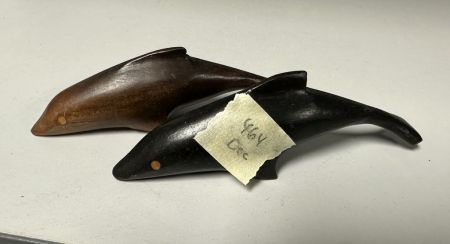 Two Small Wood Carved Dolphins, 5", Location Front Left Shelves Two Small Wood Carved Dolphins, 5", Location Front Left Shelves