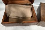 Two Vintage Trinket Boxes, lift top, inlaid, have wear, Location Back Metal Shelves Two Vintage Trinket Boxes, lift top, inlaid, have wear, Location Back Metal Shelves