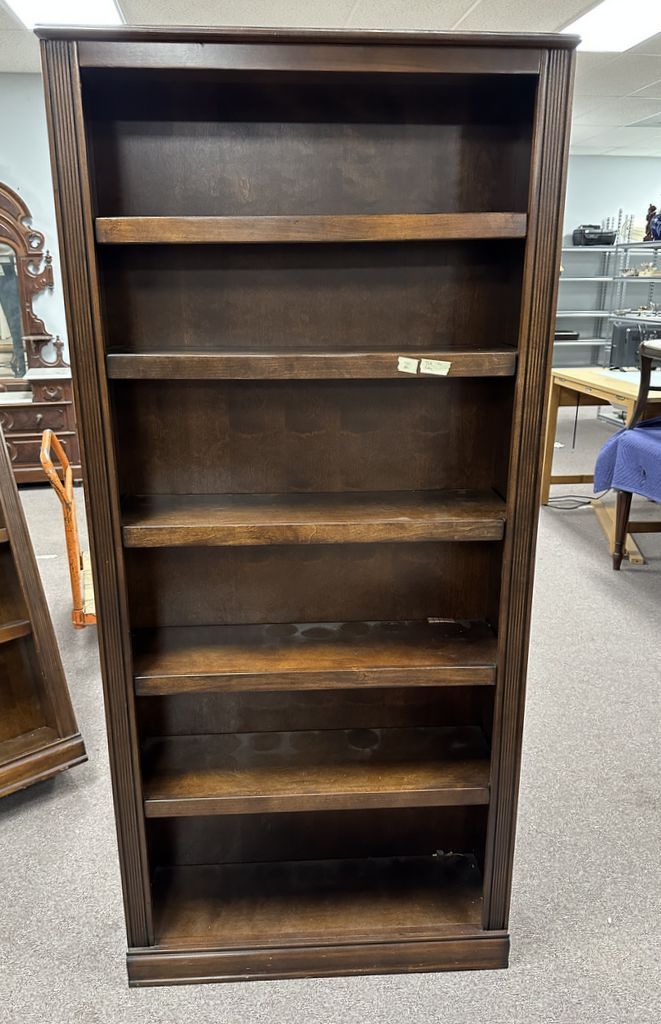 Modern Cherry Bookcase, five shelves, 75"h., 34"w. 10"d. Location Row 5 Modern Cherry Bookcase, five shelves, 75"h., 34"w. 10"d. Location Row 5
