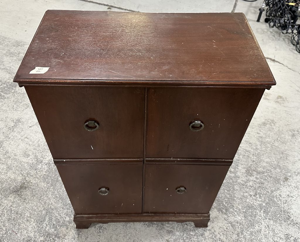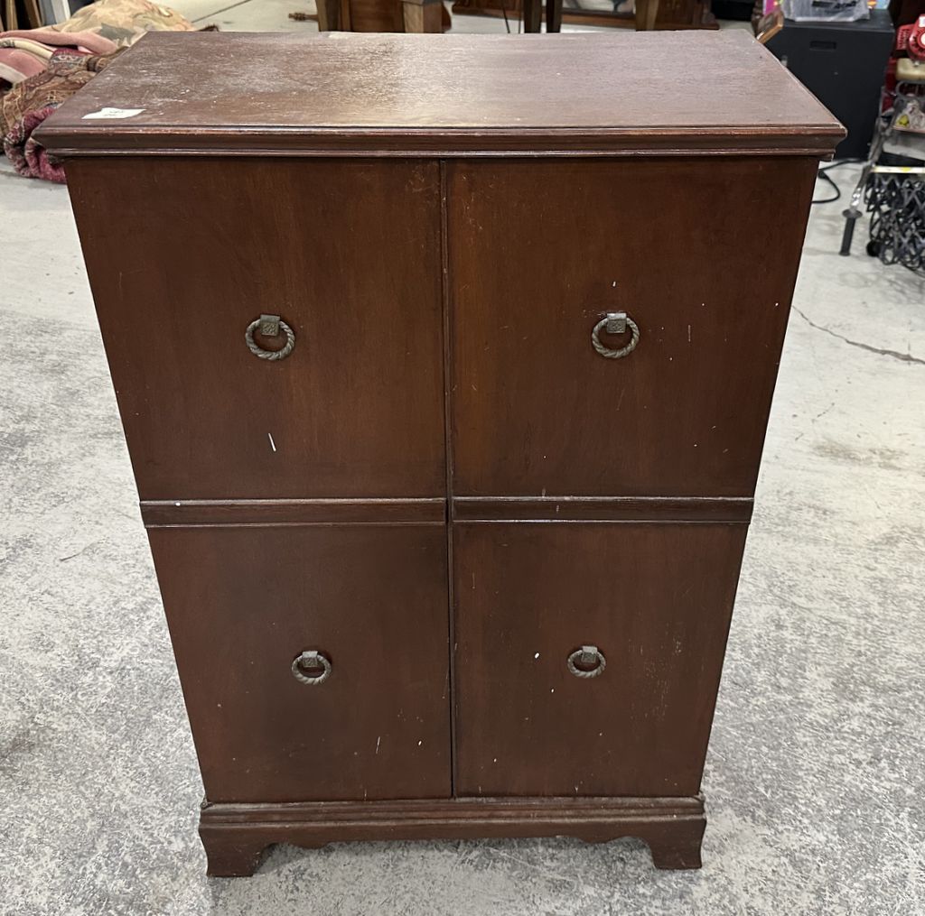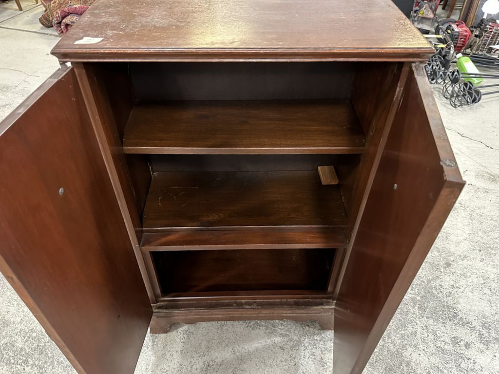 Mahogany Two Door Bookcase, 38"h, 25"w. Location Row 3 Mahogany Two Door Bookcase, 38"h, 25"w. Location Row 3