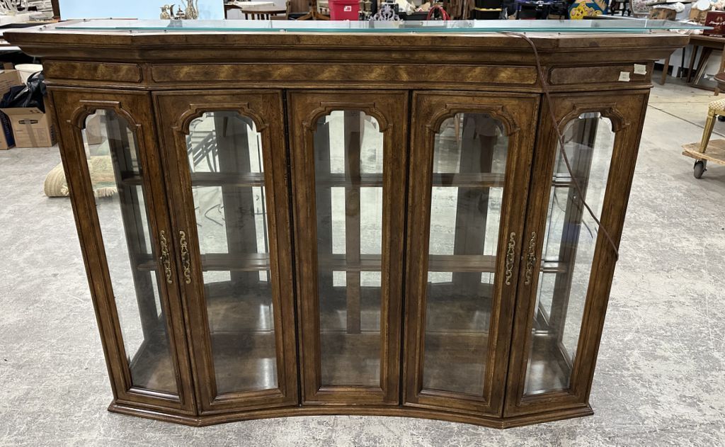 Bernhardt Co. China Cabinet Top, mirrored, back lighted, glass shelves, would make good display with feet, 52"h., 73"w. Location Right Wall Bernhardt Co. China Cabinet Top, mirrored, back lighted, glass shelves, would make good display with feet, 52"h., 73"w. Location Right Wall