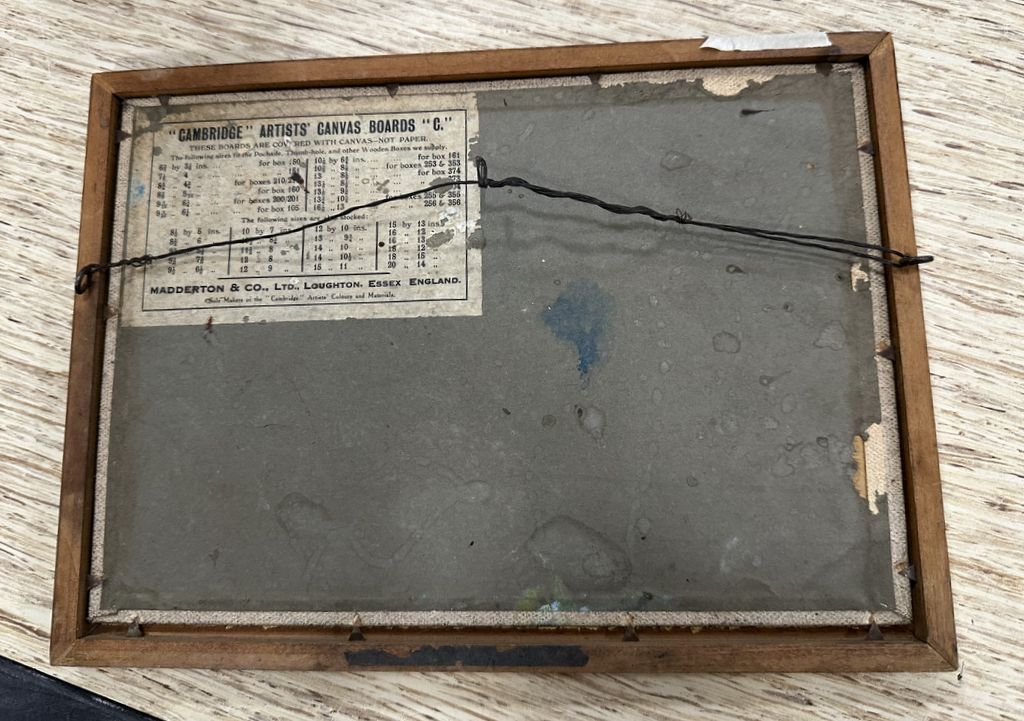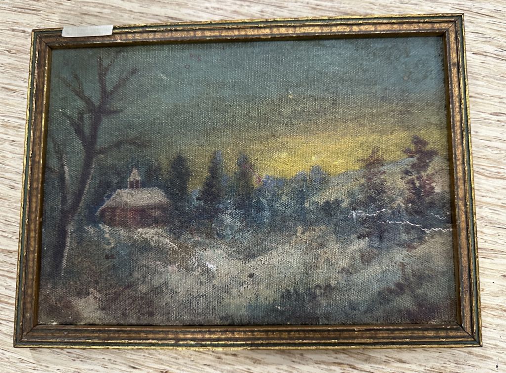 Early 20th Century Landscape Painting on Board, framed, 8"h. ,11"w, Location Right Metal Shelves Early 20th Century Landscape Painting on Board, framed, 8"h. ,11"w, Location Right Metal Shelves