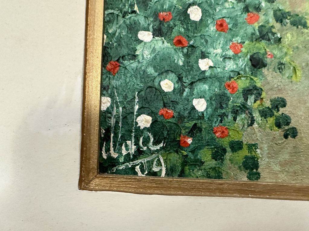 Signed Hilda Landscape Painting, on canvas, framed, 18"h., 17"w. Location Back Wall Signed Hilda Landscape Painting, on canvas, framed, 18"h., 17"w. Location Back Wall