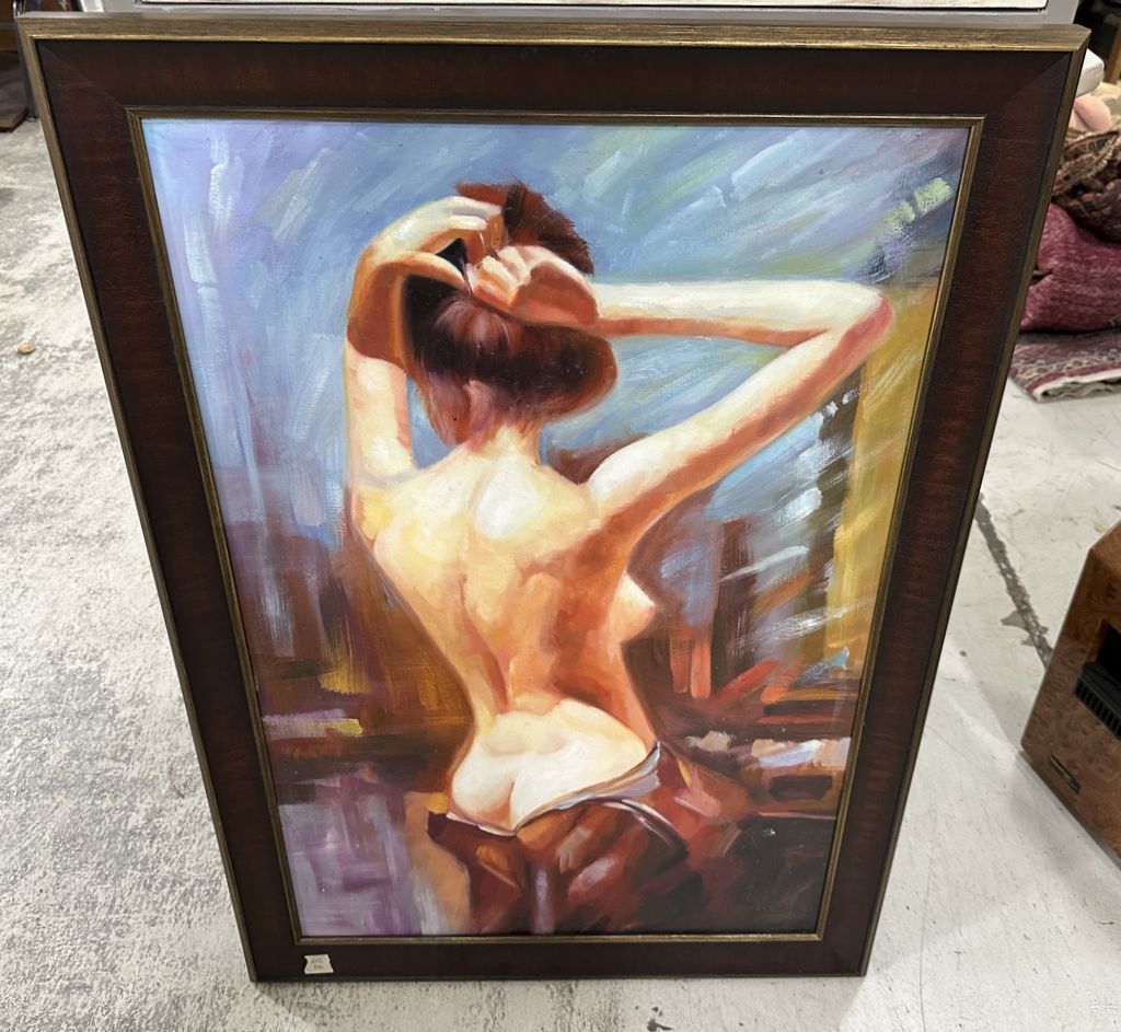 Large Nude Painting, on canvas, framed, 40"h., 28"w, Location Back Wall Large Nude Painting, on canvas, framed, 40"h., 28"w, Location Back Wall