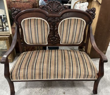 Antique Victorian Style Mahogany Parlor Settee, good condition, 48"w. Location Row 1 Antique Victorian Style Mahogany Parlor Settee, good condition, 48"w. Location Row 1