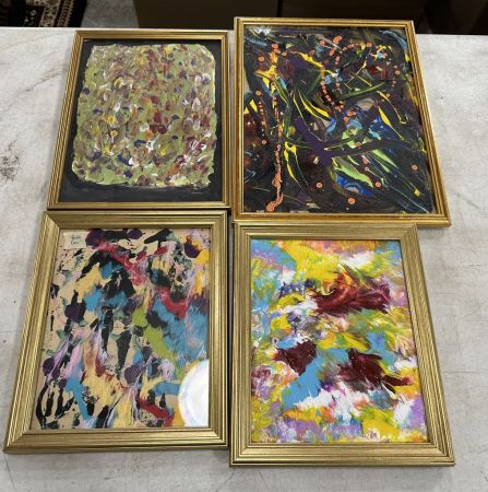 Four Michael A. Lewis Framed Paintings, 11" x 11", Location back Metal shelves Four Michael A. Lewis Framed Paintings, 11" x 11", Location back Metal shelves