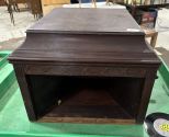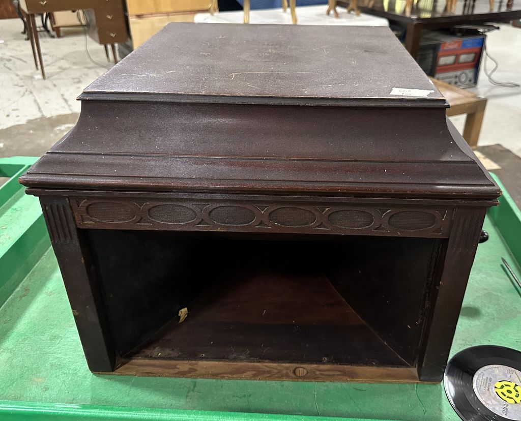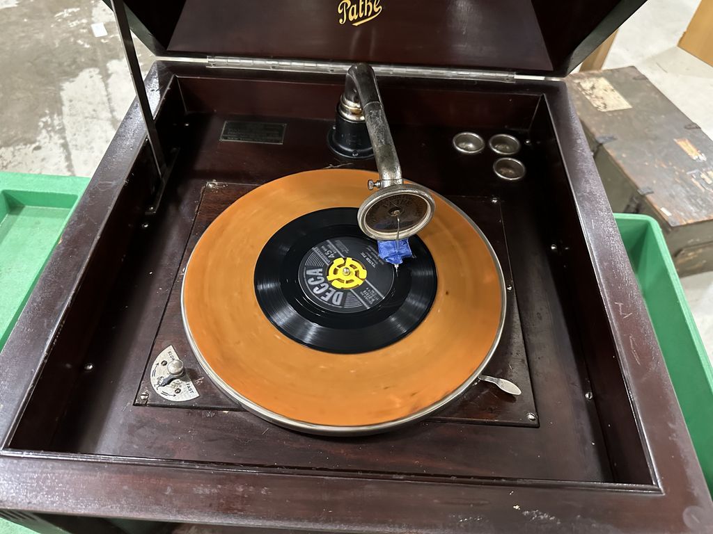 Pathe Vintage Talking Machine Record Player, top section, no base, works, 16"h., 20"w. Location Left Office 1 Pathe Vintage Talking Machine Record Player, top section, no base, works, 16"h., 20"w. Location Left Office 1