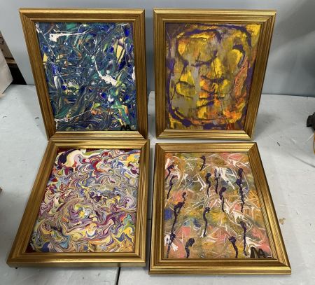 Four Michael A. Lewis Framed Paintings, 12"h., 9"w, Location Back Metal Shelves Four Michael A. Lewis Framed Paintings, 12"h., 9"w, Location Back Metal Shelves