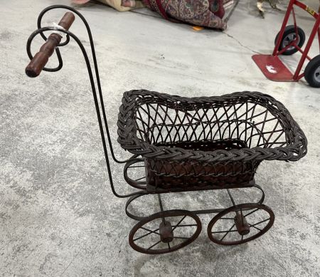 Vintage Wicker Doll Stroller, 24", Location Row 6 Vintage Wicker Doll Stroller, 24", Location Row 6