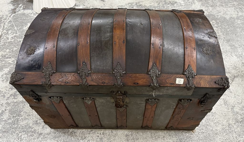 Antique Dome Top Streamer Trunk, 26"h., 38"w. Antique Dome Top Streamer Trunk, 26"h., 38"w.