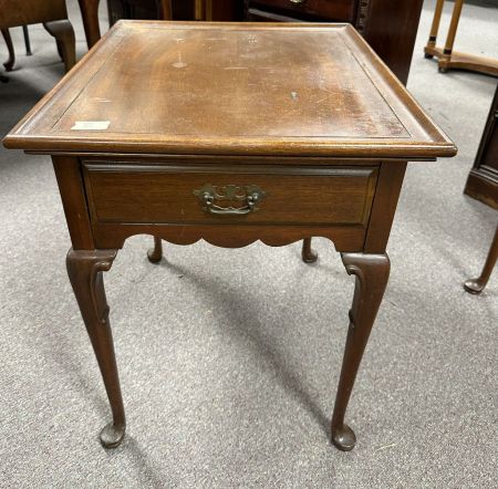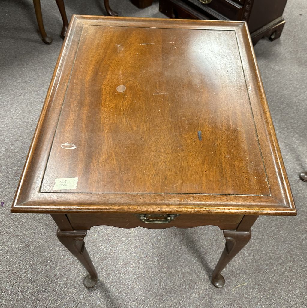 Mahogany Queen Anne Side Table, has finish wear, 25"h., 20"w. Location Left Office 1 Mahogany Queen Anne Side Table, has finish wear, 25"h., 20"w. Location Left Office 1