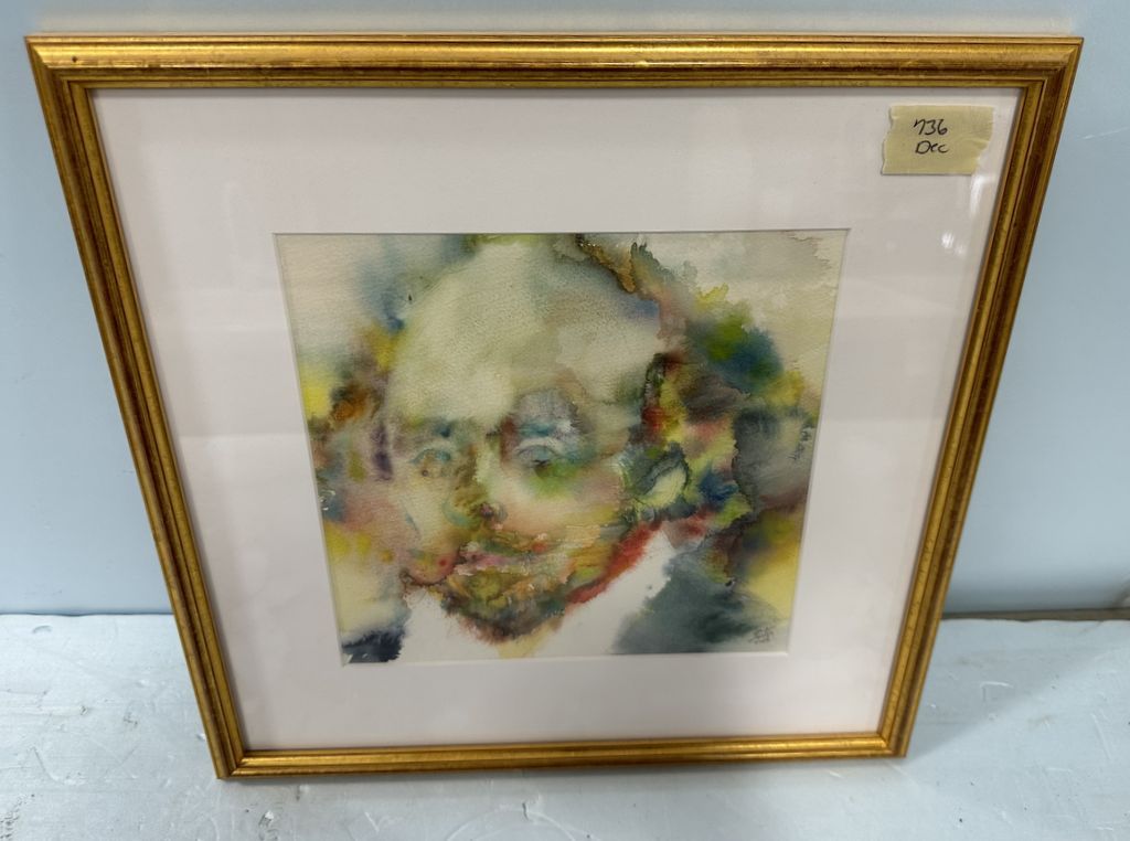 Loutin Watercolor of William Shakespeare, 14"h., 14"w, Location Back Metal Shelves Loutin Watercolor of William Shakespeare, 14"h., 14"w, Location Back Metal Shelves