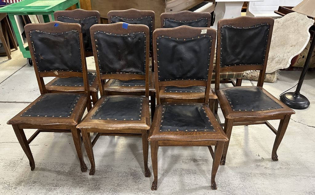 7 Antique Oak Carved Paw Footed Dining Chairs, aged wear, Location Row 5 7 Antique Oak Carved Paw Footed Dining Chairs, aged wear, Location Row 5