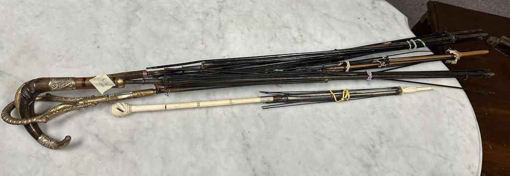Collection of Vintage Umbrella Handles, frames, Location Left Office 1 Collection of Vintage Umbrella Handles, frames, Location Left Office 1