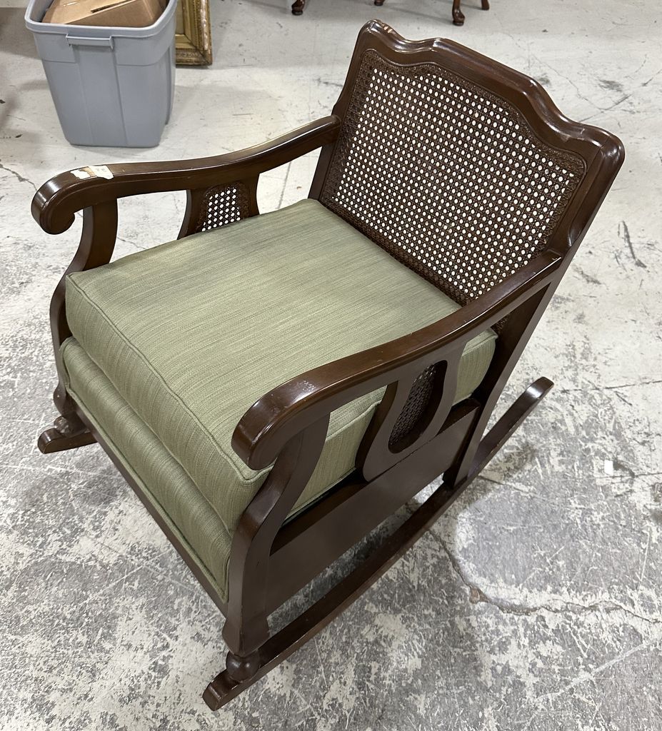 French Provincial Caned Rocking Chair, Location Row 1 French Provincial Caned Rocking Chair, Location Row 1