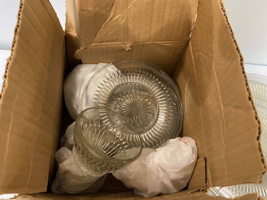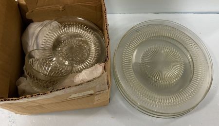 Group of Pressed Glass Plates and Cups, Location Right Metal Shelves Group of Pressed Glass Plates and Cups, Location Right Metal Shelves