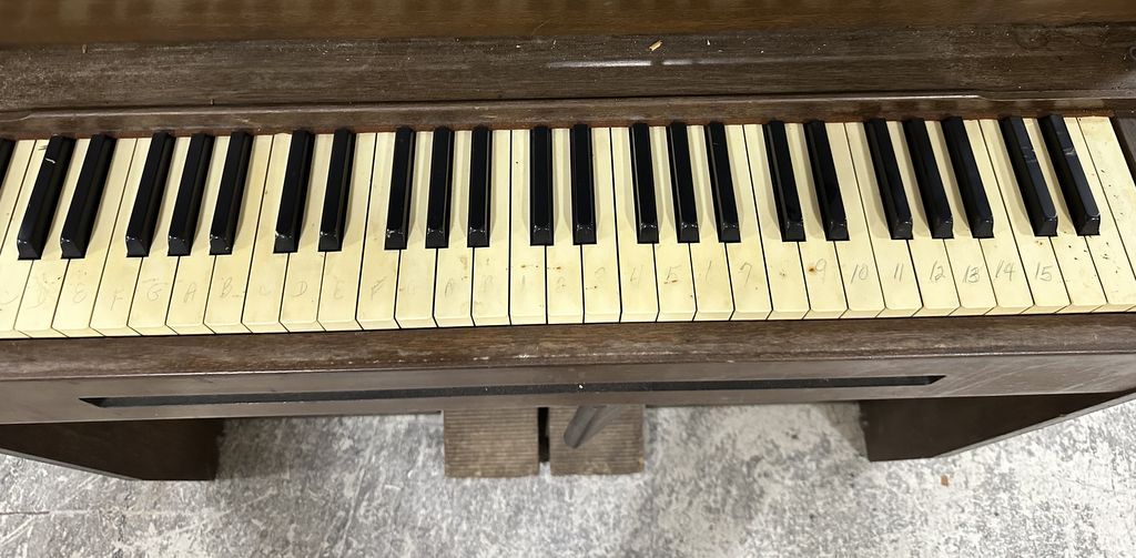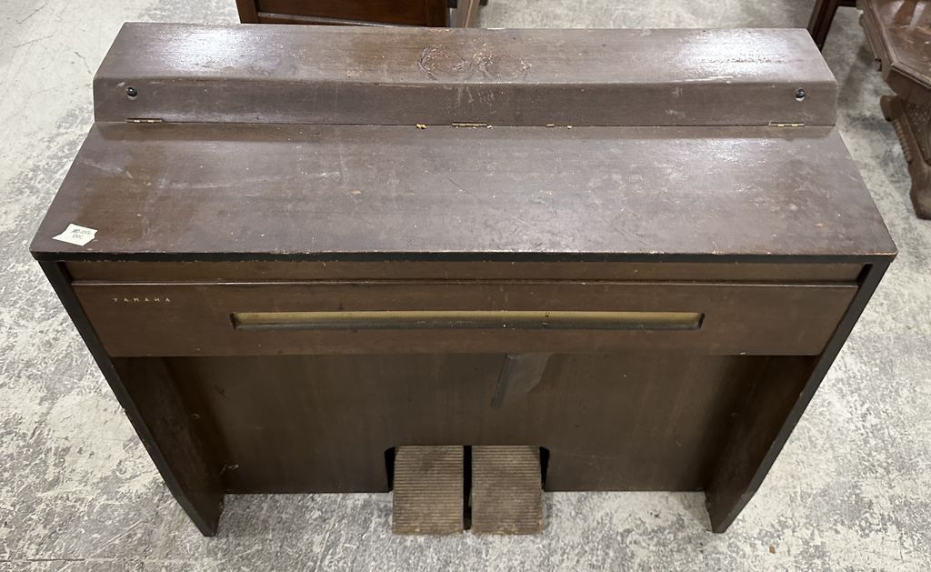 Old Yamaha Pump Organ, does work, finish worn, 32"h., 38"w. Location Row 3 Old Yamaha Pump Organ, does work, finish worn, 32"h., 38"w. Location Row 3