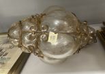 Art Nouveau Hand Blown Glass Fixture, Location Back Metal Shelves Art Nouveau Hand Blown Glass Fixture, Location Back Metal Shelves