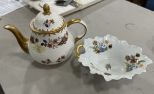 1151 Arthur Wood Porcelain Pitcher and Haviland Leaf Bowl