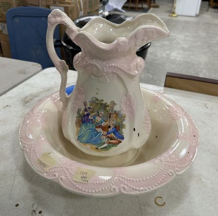 1217 Antique Porcelain English Pitcher and Wash Bowl