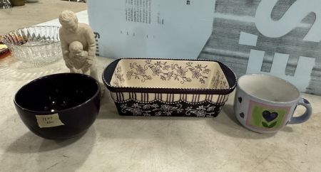 1297 Golfer Sculpture, Ceramic Bowl, Cup, and Casserole