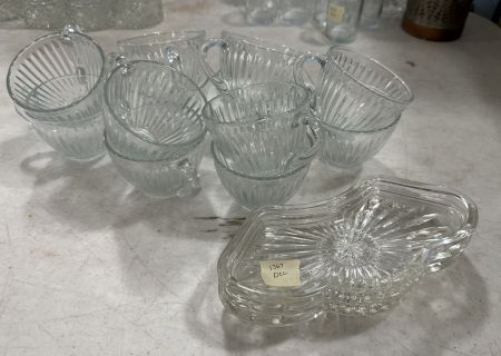 1367 Set of Glass Punch Cups and Glass Serving Dishes