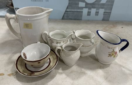 1407 Assorted Porcelain Pitcher, Creamers, and Cup & Saucer