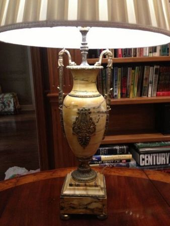Pair of French Gold Marble Vases with Bronze Fittings made into Lamps - Circa 1880-1920 Pair of French Gold Marble Vases with Bronze Fittings made into Lamps - Circa 1880-1920
