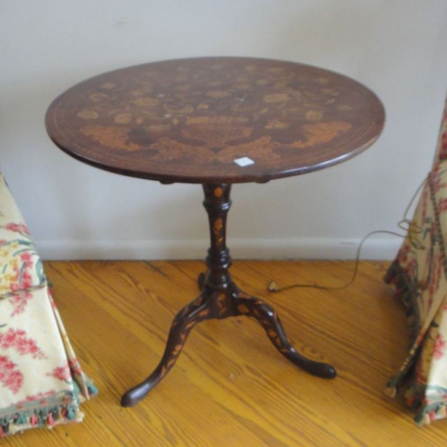 8 Dutch Marquetry Inlay Tilt-Top TriPod Table