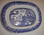 Pair of Blue Willow Platters - Circa 1840, 18 1/2"w., 14 1/2"h. Pair of Blue Willow Platters - Circa 1840, 18 1/2"w., 14 1/2"h.