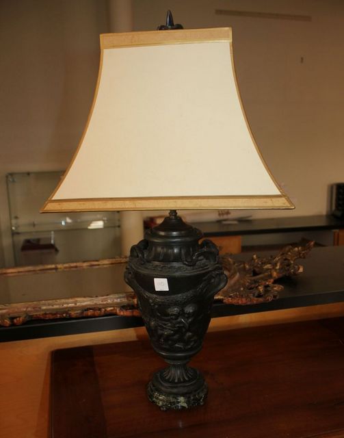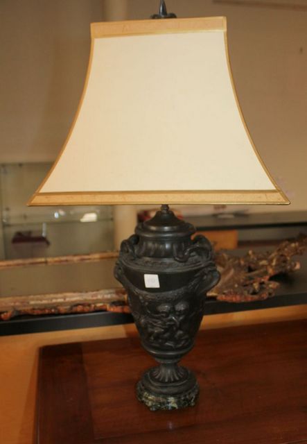 110 Black Metal Vases with Rams Heads and marble bases - made into lamps