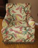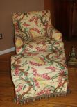 Pair of Gold Silk Coverd Dephne Chairs and ottoman with fringe Pair of Gold Silk Coverd Dephne Chairs and ottoman with fringe