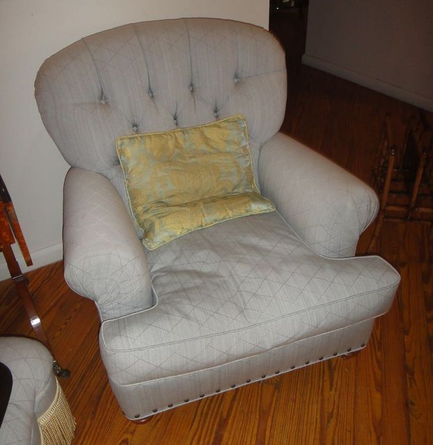 Pair of larg tuffed arm chairs and ottoman Pair of larg tuffed arm chairs and ottoman