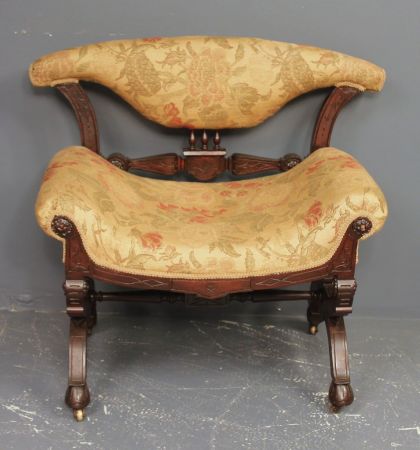 Walnut Victorian Parlor Side Chair, probably Hunzinger with hoof feet, circa 1880-1890; 27 1/2" w., 20 1/2" d., 29" h. Walnut Victorian Parlor Side Chair, probably Hunzinger with hoof feet, circa 1880-1890; 27 1/2" w., 20 1/2" d., 29" h.