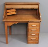 Small Oak Roll Top Desk, early 20th century, slat work, cubbyhole interior, four drawers on one side; 42" w., 27 1/2" d., 45' h. Small Oak Roll Top Desk, early 20th century, slat work, cubbyhole interior, four drawers on one side; 42" w., 27 1/2" d., 45' h.