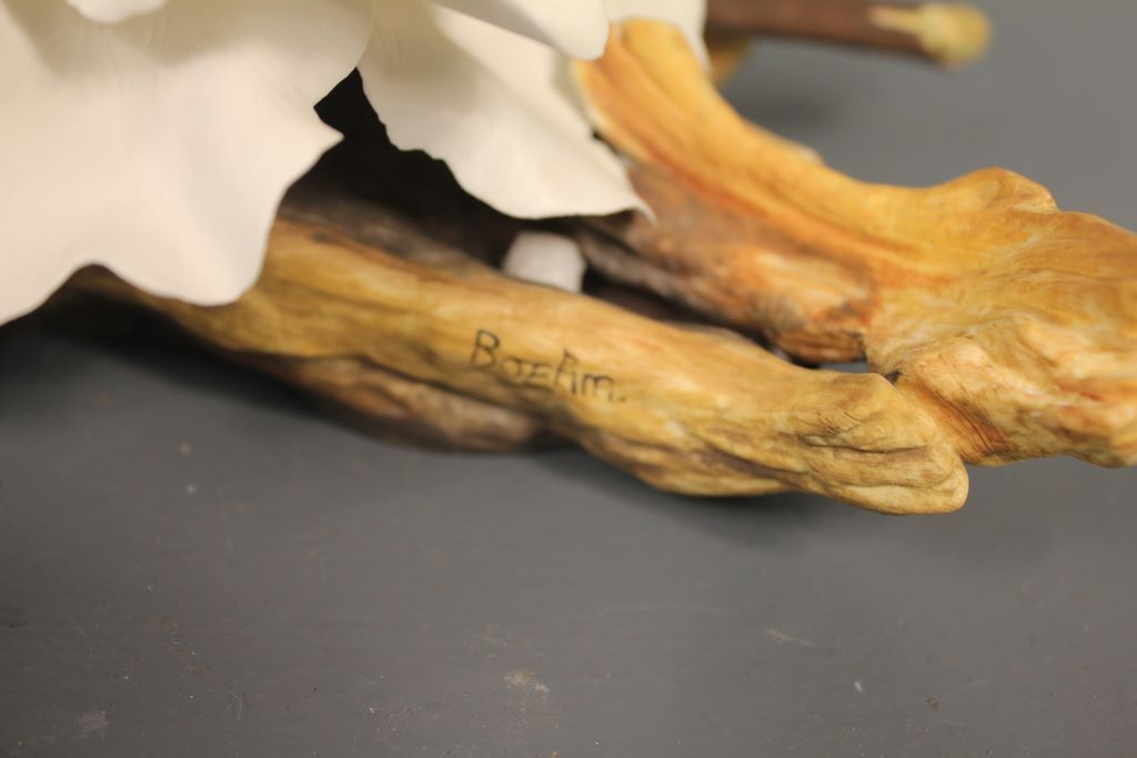 Limited Edition Camellia, limited edition #396 Swan Lake Camellia, Boehm porcelain figurine with bumblebee; 10" w., 6" h. Limited Edition Camellia, limited edition #396 Swan Lake Camellia, Boehm porcelain figurine with bumblebee; 10" w., 6" h.