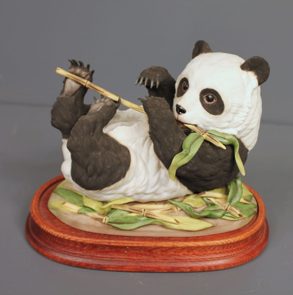 Boehm porcelain figurine of panda cub # 400-47 on stand; 8 1/2" w., 7" h. Boehm porcelain figurine of panda cub # 400-47 on stand; 8 1/2" w., 7" h.